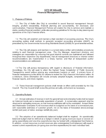 1.1  The  City  of  Keller  (the  City)  is  committed  to  sound  financial  management  through
