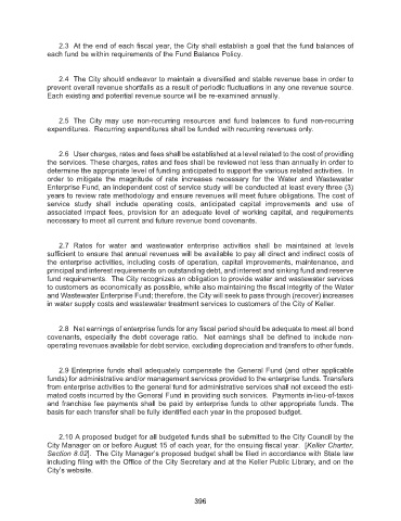 2.3  At the end of each fiscal year, the City shall establish a goal that the fund balances of