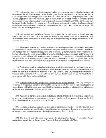 2.18 The City will strive to receive and retain the Distinguished Budget Presentation Award