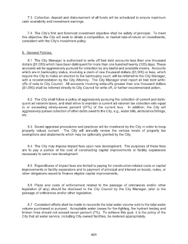 8.2 The City shall follow a policy of aggressively pursuing the collection of current and delin-