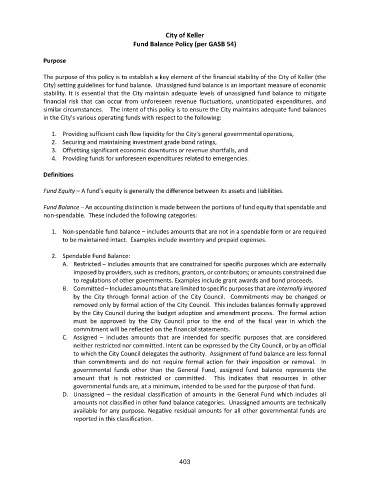 The purpose of this policy is to establish a key element of the financial stability of the City of Keller (the