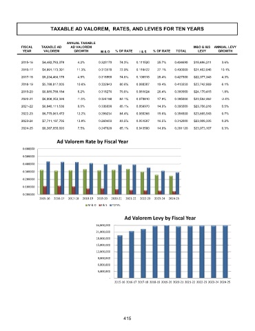 TAXABLE AD VALOREM, RATES, AND LEVIES FOR TEN YEARS
