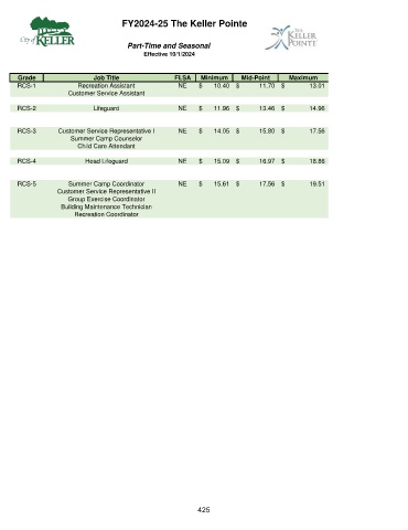 RCS-1 Recreation Assistant NE $ 10.40 $ 11.70 $ 13.01