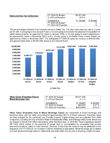 legislation. For FY 2024-25, an increase in electric franchise is anticipated. Mixed beverage tax is related