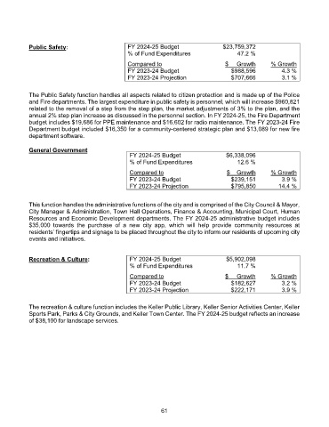 The recreation & culture function includes the Keller Public Library, Keller Senior Activities Center, Keller