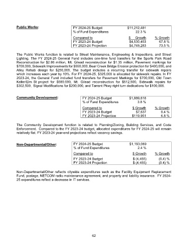 The Public Works function is related to Street Maintenance, Engineering & Inspections, and Street