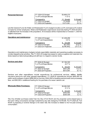 increase for civilian employees. Water and Wastewater experienced vacancies during FY 2023-24 which