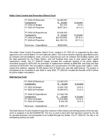 The Keller Crime Control Prevention District Fund, created in FY 2001-02, is supported by the voter-