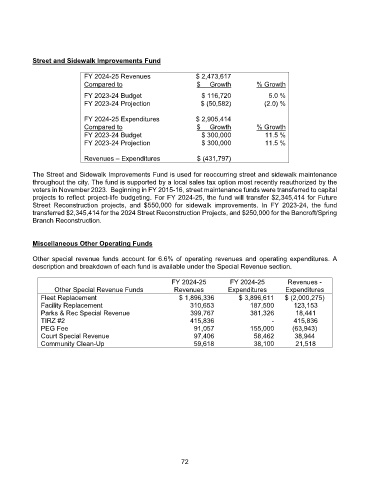 Street Reconstruction projects, and $550,000 for sidewalk improvements. In FY 2023-24, the fund