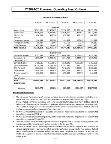 FY 2024-25 Five-Year Operating Fund Outlook