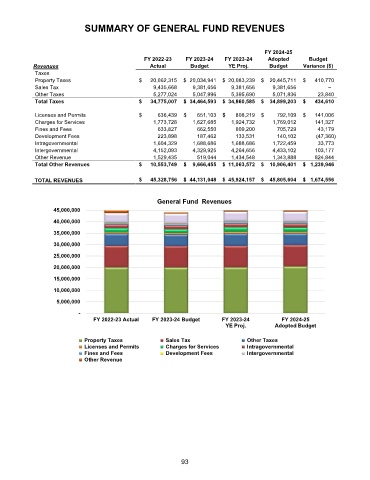 SUMMARY OF GENERAL FUND REVENUES