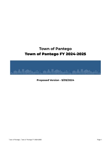 Town of Pantego Town of Pantego FY 2024-2025 Proposed Version - 9/09/2024 Town of Pantego | Town of Pantego FY 2024-2025 Page 1