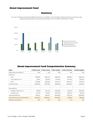 Street Improvement Fund Comprehensive Summary