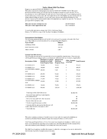 This notice concerns the 2024 property tax rates for TOWN OF TROPHY CLUB. This notice