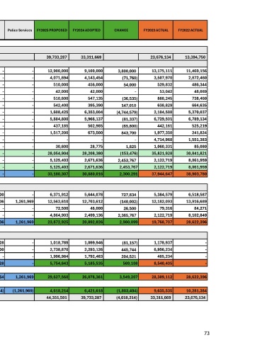 Department Police Services FY2025 PROPOSED FY2024 ADOPTED CHANGE FY2023 ACTUAL FY2022 ACTUAL