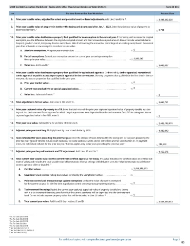 9. Prior year taxable value of property in territory the taxing unit deannexed after Jan. 1, 2023. Enter the prior year value of property in