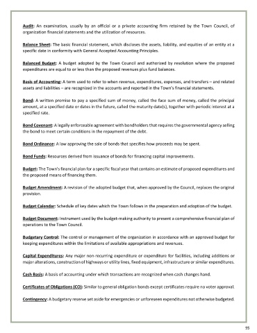 Budget: The Town's financial plan for a specific fiscal year that contains an estimate of proposed expenditures and