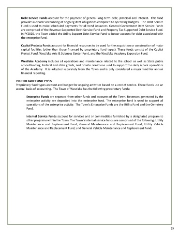 In FY2025, the Town added the Utility Support Debt Service Fund to better account for debt associated with