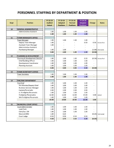 PERSONNEL STAFFING BY DEPARTMENT & POSITION