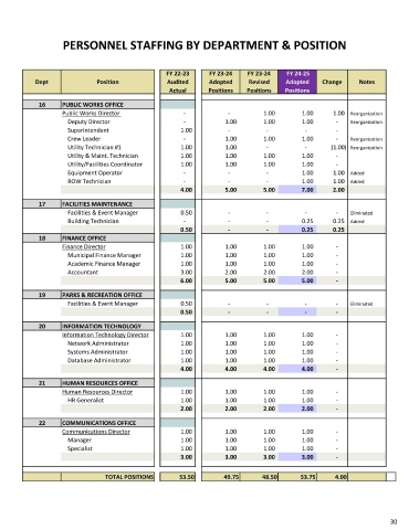PERSONNEL STAFFING BY DEPARTMENT & POSITION