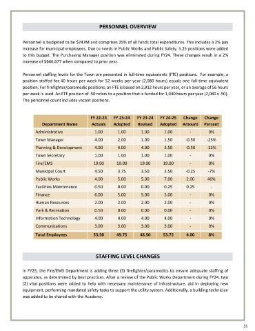 to this budget. The Purchasing Manager position was eliminated during FY24. These changes result in a 2%