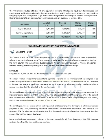 the Town Council. The General Fund budget accounts for core Town services such as fire and emergency