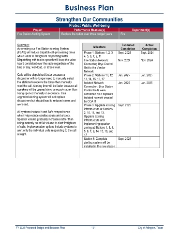 Fire Station Alerting System Replace fire radios over three budget years Fire