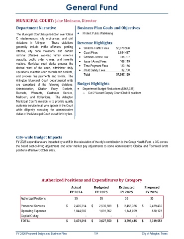 FY 2026 Proposed Budget and Business Plan 154 City of Arlington, Texas