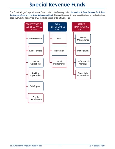 Performance Fund, and the Street Maintenance Fund. The special revenue funds receive at least part of their funding from