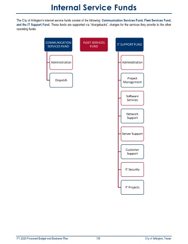 The City of Arlington’s internal service funds consist of the following: Communication Services Fund, Fleet Services Fund,