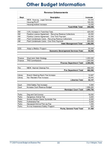 FY 2026 Proposed Budget and Business Plan 222 City of Arlington, Texas