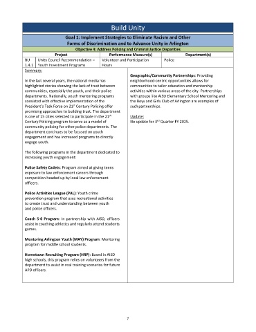 Century Policing program to serve as a model of No update for 3 Quarter FY 2025.