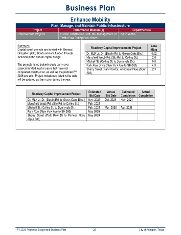 The projects listed below include carry-over Park Row Drive (New York Ave to SH-360) 4.9