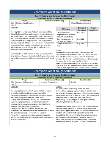 Neighborhood Outreach Network, including advertisement May. Staff has utilized various outreach channels to
