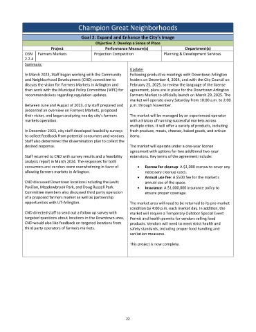 In December 2023, city staff developed feasibility surveys fresh produce, meats, cheeses, baked goods, and artisan
