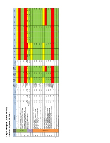 City of Arlington Council Priority: Enhance Regional Mobility Key Measures Citizen perception of overall condition of streets/roads as "excellent" or "good" [annual survey] Citizen perception of traffic levels are acceptable as "strongly agree" or "somewhat agree" [annual survey] Citizen perception of excellent or good for traffic flow management in the Entertainment District [annual survey] Citizen perception of overall satisfaction with the management of traffic flow
