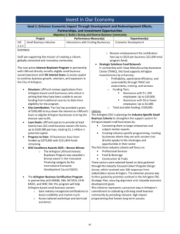 • The Arlington Business Certification Program further guided by priorities outlined in the Arlington EDC