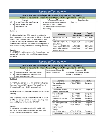 In FY 2020, the City issued an RFP for a new Enterprise Workday Learning 3 Qtr. FY 2024 Complete