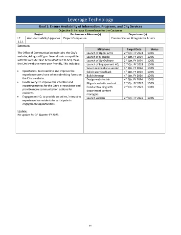 the City’s website more user-friendly. This includes: Launch of Engagement HQ 2 Qtr. FY 2025 100%