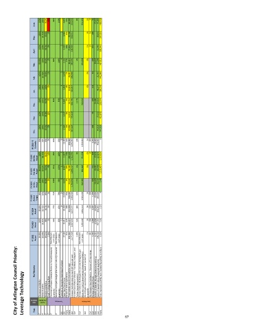 City of Arlington Council Priority: Leverage Technology Key Measures File server availability Network uptime Website availability Email Phishing/Snag Rate Governance Projects Schedule (Active vs. Actual) [measured quarterly] Governance Projects Budget (Planned vs. Actual) [measured quarterly] Datasets or Interactive Web Maps Published Open Data Portal Users Percent of online registrations Total website sessions (naturallyfun.org) Increase YouTube views to reach 2M