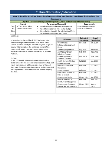 approved obligation bonds to build an Active Adult Initial Project Jan. 2019 Jan. 2019