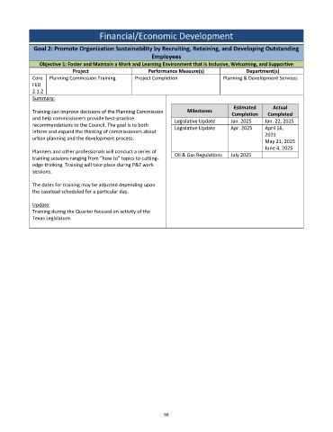 Training can improve decisions of the Planning Commission Milestones Completion Completed