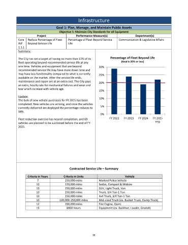 The City has set a target of having no more than 15% of its Percentage of Fleet Beyond Life