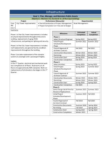 Phase 1 of the City Tower Improvements includes: Completion Completion
