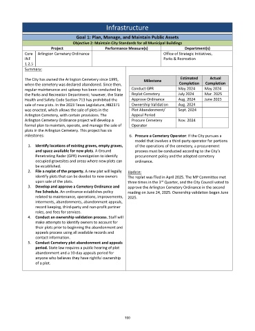 The City has owned the Arlington Cemetery since 1995, Milestone Estimated Actual