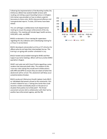 regarding the city ordinance and is developing training for      Contacts  Camps  DRC