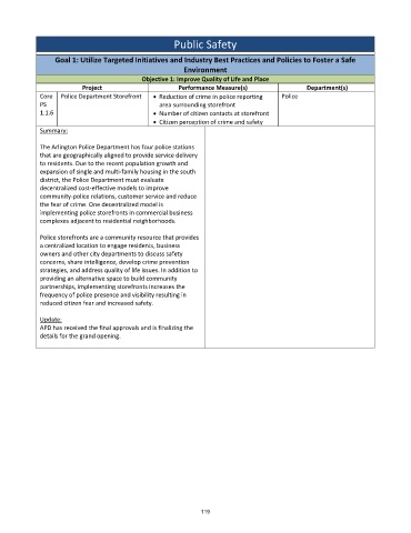 Core  Police Department Storefront   • Reduction of crime in police reporting  Police