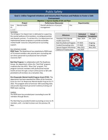 The Arlington Fire Department is dedicated to supporting                     Estimated    Actual