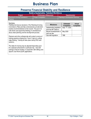 Training can improve decisions of the Planning & Zoning Milestones Completion Completed