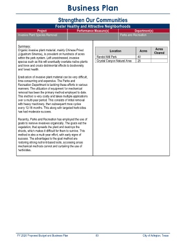 within the park system. Left unaddressed, invasive Randol Mill Park 40